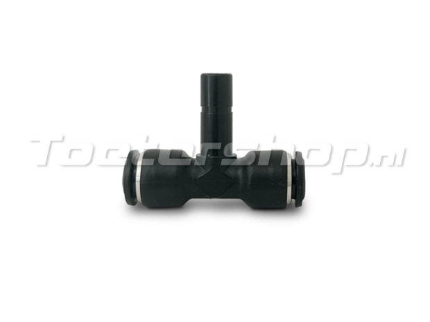 Pièce en T pour 2 tuyaux PTC de 8 mm. Avec une broche de 8 mm de diamètre.